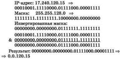 • маска инвертируется (единичные биты заменяются на нулевые и наоборот);