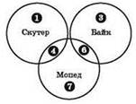 Совокупность запросов можно представить в виде диаграммы Эйлера-Венна (ключевым словам соответствуют пересекающиеся круги), а получившиеся при этом области нумеруются. Для нумерации используются цифры в кружках.