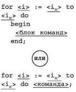 Обеспечивает выполнение блока команд, составляющего тело цикла, количество раз, заданное начальным, конечным значениями переменной-счётчика (параметра цикла) и шагом её изменения.