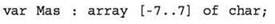 2) объявление одномерного массива из 15 символов (базовый тип — char), индексы которых меняются от -7 до 7: