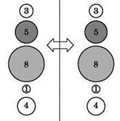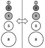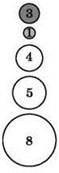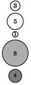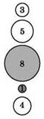 Метод пузырьковой сортировки можно рассмотреть на примере числового массива из 5 элементов: (5, 3, 8, 1, 4), — который надо отсортировать по возрастанию. Для наглядности элементы располагаются по вертикали, друг над другом, и обводятся кружками разного размера.