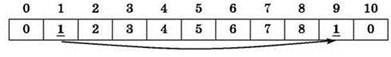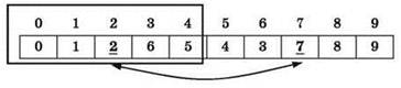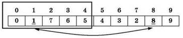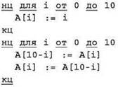 При определении обрабатываемой части массива следует быть внимательными! Если бы данный массив был обработан целиком, то, начиная со значения i = 5, происходил бы обратный обмен значений элементов. В результате вновь получился бы исходный массив.
