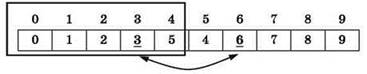 To есть элементы массива меняются местами первый — с последним, второй — с предпоследним и т.д. В результате получается массив 0, 1, 2, 3, 4, 5, 6, 7, 8, 9.