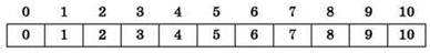 3. Заполнение массива: каждому элементу присваивается значение, равное его индексу: