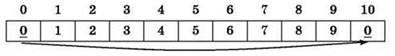 Ответ: массив 0, 1, 2, 3, 4, 5, 6, 7, 8, 9 (вариант ответа № 2).
