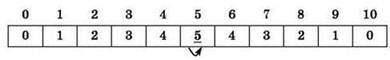 Таким образом, в результате получается массив из элементов: 0, 1, 2, 3, 4, 5, 4, 3, 2, 1, 0.