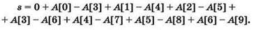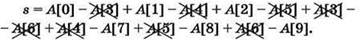 Получаем: s = А[0] + А[1] + А[2] - А[7] - А[8] - А[9].