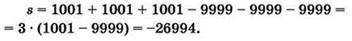 3) Получаемая сумма (разность) должна, по условию, иметь наименьшее значение. А сами элементы массива — это четырёхзначные нечётные натуральные числа, т.е. числа в диапазоне от 1001 до 9999. Следовательно, те элементы массива, которые записаны в выражении со знаком “плюс”, должны быть наименьшими из возможных, а элементы массива со знаком “минус” должны быть наибольшими из возможных. Значит, нужно выбрать их следующими: А[0] = А[1] = А[2] = 1001, а А[7] = А[8] = А[9] = 9999.