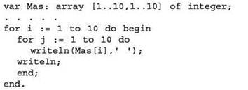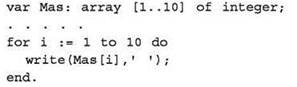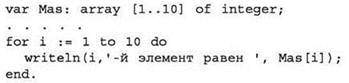 Возможен альтернативный вариант, когда используется оператор writeln, в котором указывается значение индекса и значение элемента с этим индексом. В этом случае каждый элемент выводится в отдельной строке.