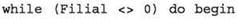 5. Считывается очередная порция данных (три числа в переменные Filial, Mes и Summ) — если номер филиала не равен нулю, то выполняется очередной проход цикла.