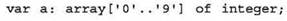 При формировании массива-счётчика нужно не забывать, что в качестве индексов его элементов в Паскале могут использоваться не только произвольные диапазоны целых чисел, но и диапазоны символов, например букв алфавита.
