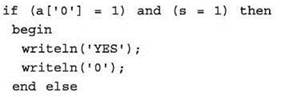 2) проверяется условие: количество нулей равно 1, а количества других цифр равны нулю (что понятно из равенства общей суммы количеств всех цифр всё той же единице). Если это истинно, то выводится слово “YES” и число 0.