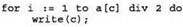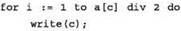 • выводится цепочку таких цифр (цифра — текущее значение параметра цикла), длина которой равна половине всего количества таких цифр (если это количество нечётно, то дробная часть отбрасывается, т.е. используется целочисленное деление):