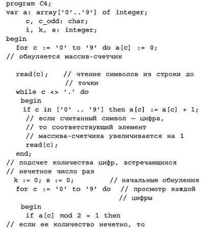 1. Необходимо вычислять количества каждой из цифр от 0 до 9, поэтому объявляется массив-счётчик с индексами элементов от '0' до '9'.