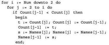 Внимание! При перестановке элементов в массиве-счётчике нужно одновременно переставлять соответствующие им элементы индексного массива, чтобы сохранить соответствие этих массивов.