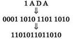 Пример: требуется перевести число 1ADA16 в двоичную систему счисления: