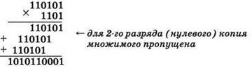 Пример: требуется вычислить значение выражения 1101012 х 11012: