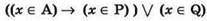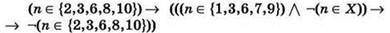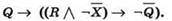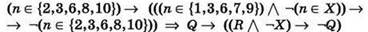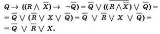 Начало решения такое же, как в предыдущей задаче: введем для используемых в выражении множеств обозначения в виде латинских букв R и Q, а затем заменим записи условий принадлежности переменной п соответствующему множеству одноименными логическими переменными: