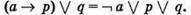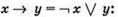 Затем переписываем заданное логическое выражение с учётом этих замен и выполняем его упрощение, избавляясь от операции следования и (по возможности) от скобок: