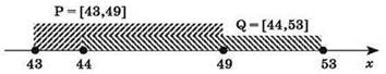 Задача 3. На числовой прямой даны два отрезка: Р = [43, 49] и Q = [44, 53].