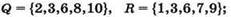 1) Рисуем числовые прямые, соответствующие множествам Q, R и X (лучше всего делать это на тетрадном листке в клеточку). Размечаем на них позиции, соответствующие всем возможным числам, используемым в множествах (в данном случае — от 1 до 10, так как наименьшее число, встречающееся в заданных множествах, равно 1, а наибольшее равно 10).