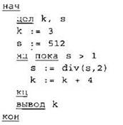 Определите значение переменной k после выполнения следующего фрагмента программы, записанной ниже на разных языках программирования.