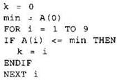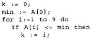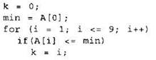 19. В программе используется целочисленный массив А с индексами от 0 до 9. Значения элементов массива равны 6; 5; 4; 7; 10; 6; 9; 11; 7; 8 соответственно, т.е. А[0] = 4; А[1] = 5 и т.д.
