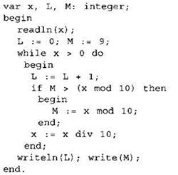 В качестве ответа вам необходимо привести фрагмент программы (или описание алгоритма на естественном языке), который должен находиться на месте многоточия. Вы можете записать решение также на другом языке программирования (укажите название и используемую версию языка программирования, например Borland Pascal 7.0) или в виде блок-схемы. В этом случае вы должны использовать те же самые исходные данные и переменные, какие были предложены в условии (например, в образце, записанном на естественном языке).