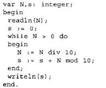 24. Требовалось написать программу, которая вводит с клавиатуры натуральное число N (N < 109) и выводит на экран сумму цифр числа. Программист торопился и написал программу неправильно.