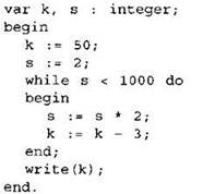 8. Определите, что будет напечатано в результате выполнения следующего фрагмента программы: