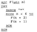 11. Определите, сколько звёздочек будет напечатано в результате вызова F(1) приведённой подпрограммы: