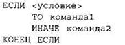 выполняется команда 1 (если условие истинно) или команда2 (если условие ложно).