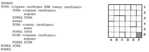 14. Система команд исполнителя РОБОТ, “живущего” в прямоугольном лабиринте на клетчатой плоскости включает 4 команды-приказа и 4 команды проверки условия. Команды-приказы: