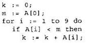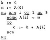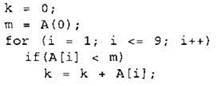 19. В программе используется целочисленный массив А с индексами от 0 до 9. Значения элементов массива равны 6; 5; 4; 7; 10; 6; 9; 11; 7; 8 соответственно, т.е. А[0] = 4; А[1] = 5 и т.д.
