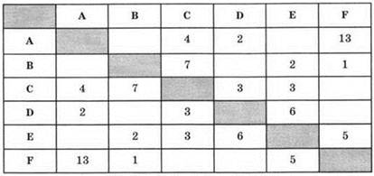 3. Между населёнными пунктами А, В, С, D, Е, F построены дороги, протяжённость которых приведена в таблице. (Отсутствие числа в таблице означает, что прямой дороги между пунктами нет.)