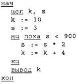 Определите значение переменной k после выполнения следующего фрагмента программы, записанной ниже на разных языках программирования.