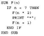 11. Определите, сколько звёздочек будет напечатано в результате вызова F(1) приведённой подпрограммы: