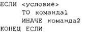 выполняется команда1 (если условие истинно) или команда2 (если условие ложно).