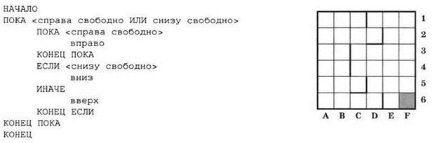 14. Система команд исполнителя РОБОТ, “живущего” в прямоугольном лабиринте на клетчатой плоскости включает 4 команды-приказа и 4 команды проверки условия. Команды-приказы:
