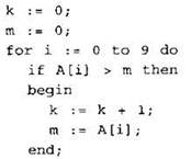 19. В программе используется целочисленный массив А с индексами от 0 до 9. Значения элементов массива равны 6; 5; 4; 7; 10; 6; 9; 11; 7; 8 соответственно, т.е. А[0] = 4; А[1] = 5 и т.д.