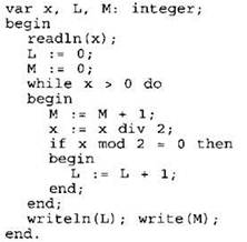В качестве ответа вам необходимо привести фрагмент программы (или описание алгоритма на естественном языке), который должен находиться на месте многоточия. Вы можете записать решение также на другом языке программирования (укажите название и используемую версию языка программирования, например Borland Pascal 7.0) или в виде блок-схемы. В этом случае вы должны использовать те же самые исходные данные и переменные, какие были предложены в условии (например, в образце, записанном на естественном языке).