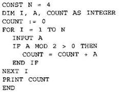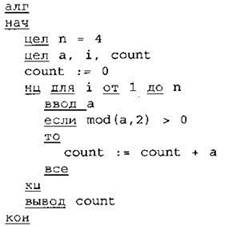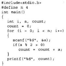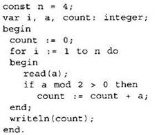 24. Требовалось написать программу, которая вводит с клавиатуры последовательность из n целых чисел (n — 4), и выводит на экран количество нечётных чисел среди этой последовательности. Известно, что вводимые числа не превышают по модулю 1000. Программист торопился и написал программу неправильно.