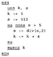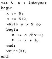 Определите значение переменной k после выполнения следующего фрагмента программы, записанной ниже на разных языках программирования.