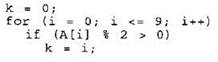 19. В программе используется целочисленный массив А с индексами от 0 до 9. Значения элементов массива равны 6; 5; 4; 7; 10; 6; 9; 11; 7; 8 соответственно, т.е. А[0] = 4; А[1] = 5 и т.д.