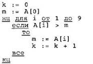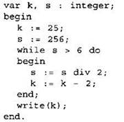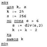 Определите значение переменной k после выполнения следующего фрагмента программы, записанной ниже на разных языках программирования.