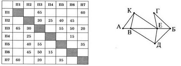 3. На рисунке справа схема дорого Н-ского района изображена в виде графа, в таблице содержатся сведения о длинах этих дорог (в километрах).