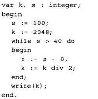 8. Определите, что будет напечатано в результате выполнения следующего фрагмента программы:
