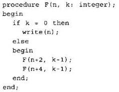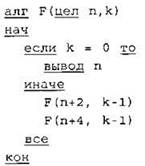 11. Дан рекурсивный алгоритм F. Приведите последовательность чисел (без пробелов), напечатанных на экране при выполнении вызова F(1, 2)?