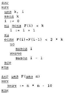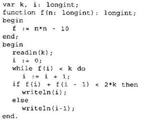 В качестве ответа вам необходимо привести фрагмент программы (или описание алгоритма на естественном языке), который должен находиться на месте многоточия. Вы можете записать решение также на другом языке программирования (укажите название и используемую версию языка программирования, например Borland Pascal 7.0) или в виде блок-схемы. В этом случае вы должны использовать те же самые исходные данные и переменные, какие были предложены в условии (например, в образце, записанном на естественном языке).