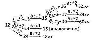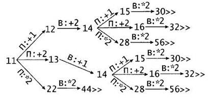 2. S = 9 или S = 11 или S = 6 (достаточно указать два значения из трех. Например, S = 9 или S = 11). В обоих случаях Петя должен получить в кучке 12 камней (9 + 3 = 12, 11 + 1 = 12). При любом ответном ходе Вани (12 + 1 = 13, 12 + 3 = 15 или 12 x 2 = 24), Петя должен удвоить число камней в куче и выиграть (13 х 2 = 26, 15 х 2 = 30 или 24 х 2 = 48).
